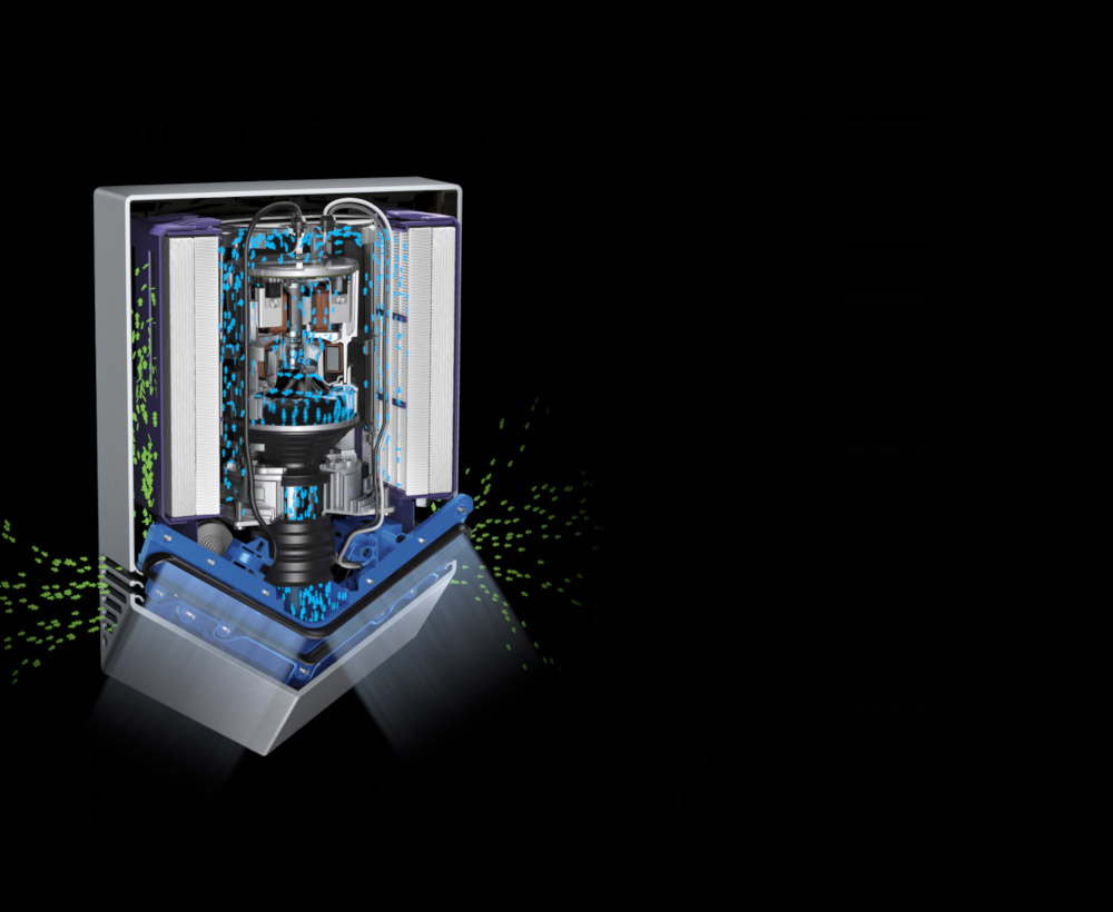 Το στροφείο και το εσωτερικό σύστημα διάχυσης σχεδιάστηκαν από την αρχή για μείωση του θορύβου κατά τη ροή του αέρα.